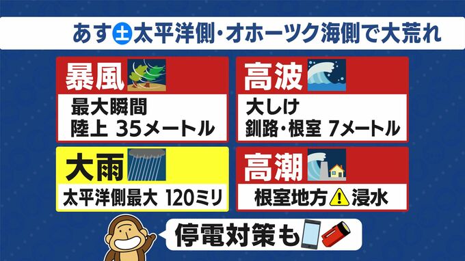 また、根室地方では1日昼過ぎから夕方は高潮による低い土地の浸水にも警戒してください。