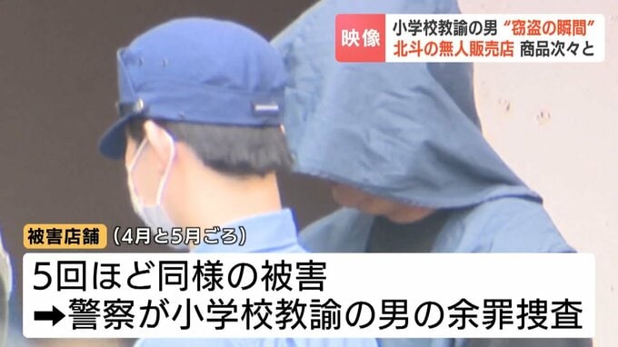 店によりますと、4月と5月頃にも、5回ほど同様の被害があり、警察は、小学校教諭の男の余罪も調べています。