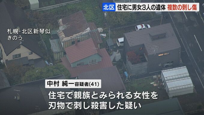 札幌市北区の無職、中村純一容疑者は、札幌市北区新琴似の住宅で、親族とみられる女性を刃物で刺して殺害した疑いがもたれています。