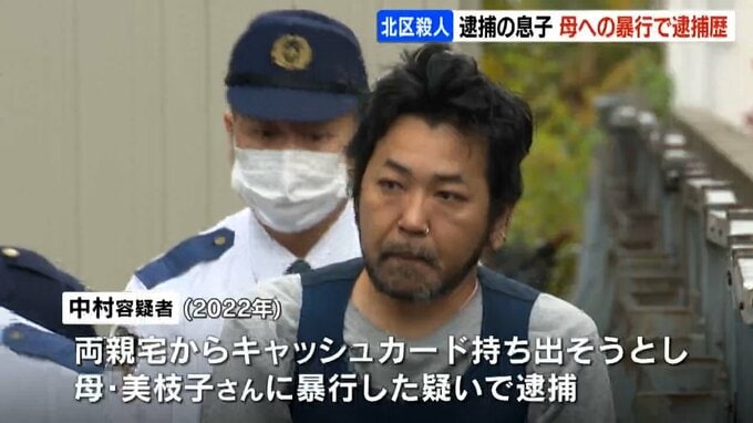 また3年前に中村容疑者が家からキャッシュカードを持ち出そうとして母と口論になり、顔を叩いたとして暴行の疑いで逮捕されていたことがわかりました。