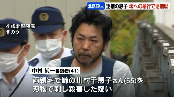 中村純一容疑者(41)は、札幌市北区新琴似の両親の自宅で、姉の川村千恵子さん(55)を刃物で刺して殺害した疑いで先月31日に逮捕されました。