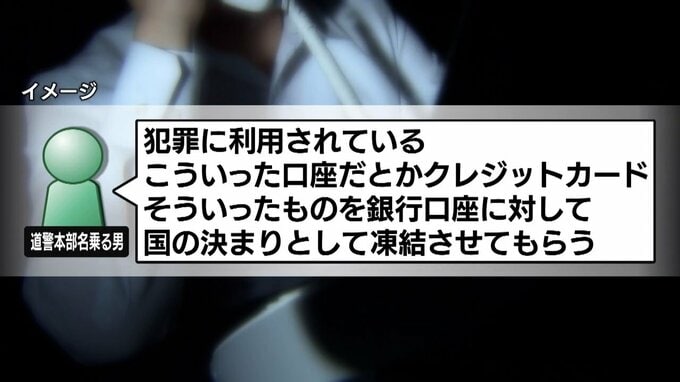「これは犯罪に使われている。こういった口座だとかクレジットカード。ね、そういったものを銀行口座に対して、国の決まりとしてですね、凍結させていただくようになります。そうなるとやはり吉田さんは困ってしまいますよね」