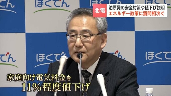 泊原発再稼働への理解を求めて…北電が札幌で説明会、参加者からは安全性や国のエネルギー政策についても疑問の声 2025年11月3日(月) 17:51 国内 北海道電力 齋藤晋社長(10月31日)「規制料金ではご家庭料金向けに現在の料金と比較して11%程度の値下げ」10月31日、北海道電力が示した家庭用電気料金の「11%程度の値下げ」3日、引き下げの前提となる泊原発3号…