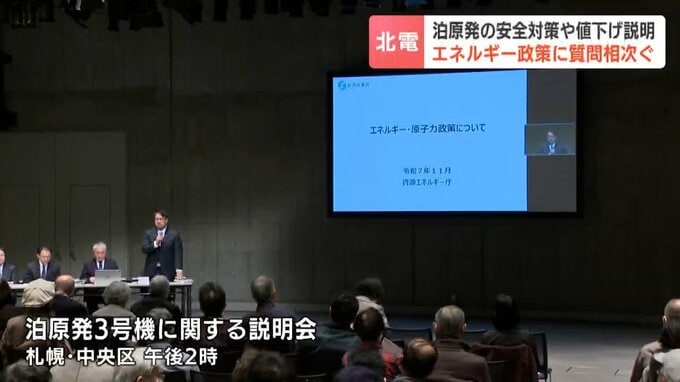 3日、引き下げの前提となる泊原発3号機の再稼働について、札幌市で説明会が開かれました。参加者の関心は…