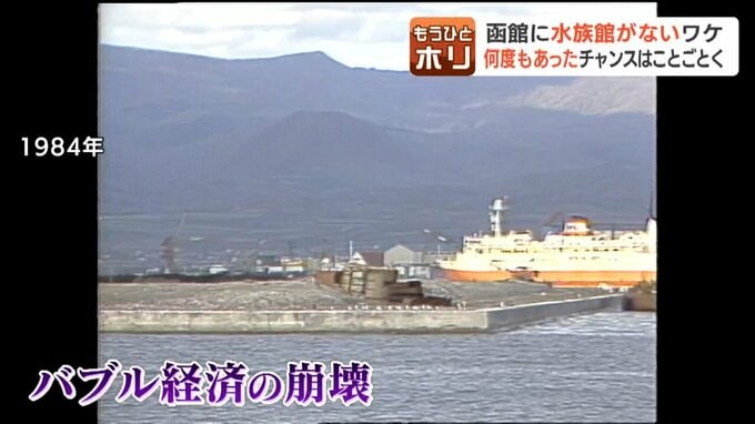 しかし、バブル経済の崩壊で「夢」も泡と消え、今度は、函館市が建設を計画。道南に棲む海洋生物を集めた「大パノラマ水槽」が目玉でしたが、財政難で実現に至りませんでした。