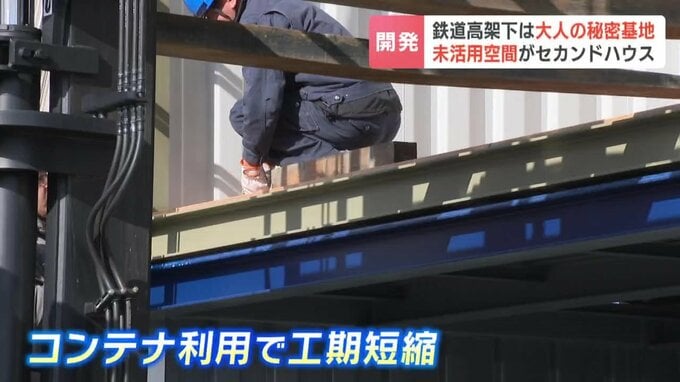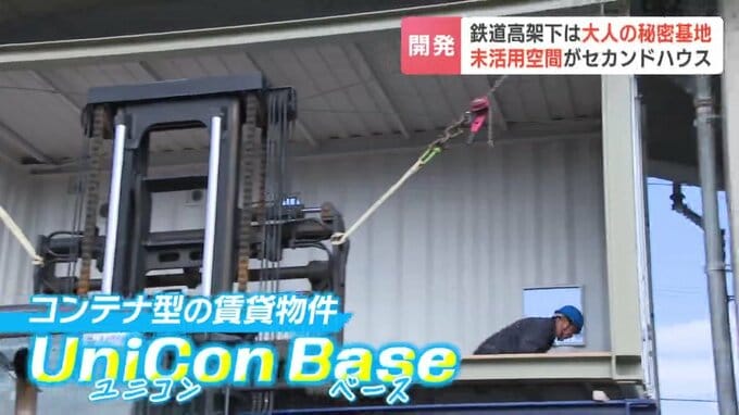 4日、駅と駅の間のいわゆる「エキカン」の高架下に運ばれてきたのは大きなコンテナです。