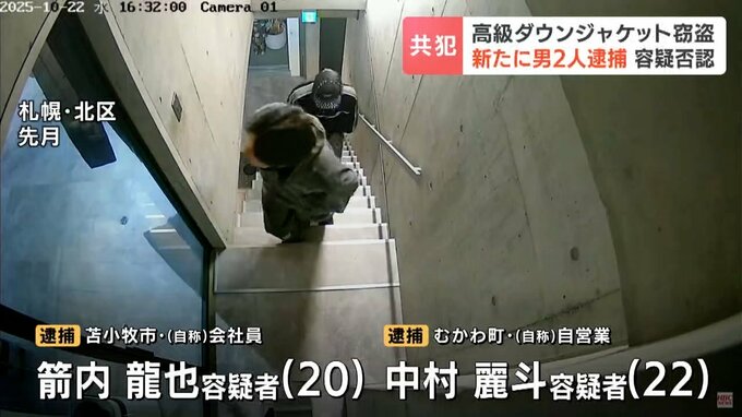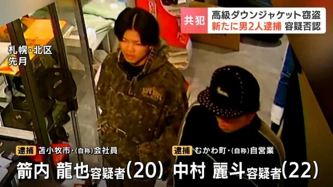 10月、札幌市北区のセレクトショップで高級ダウンジャケット5着が盗まれた事件で、警察は新たに男2人を逮捕しました。