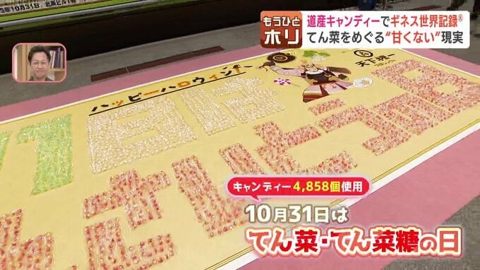 スタートから1時間で、キャンディー4858個を使った「10月31日はてん菜・てん菜糖の日」という、あまーい文章を完成。
