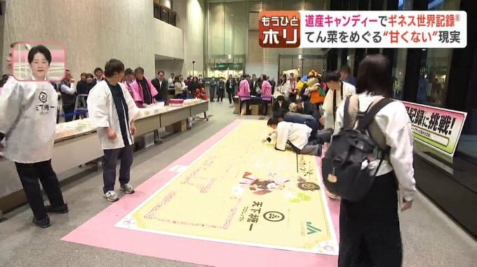 ロビーに飴玉=キャンディを並べて「世界最大の甘い文章」を作るという、ギネス世界記録に挑んでいます。