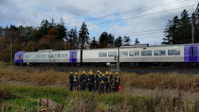 JR北海道によりますと、特急宗谷に乗っていた乗客120人は、列車から降り、線路を歩いて近くの踏切まで移動し、バスに乗り換えたということです。