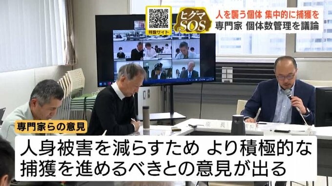 専門家からは、問題個体を特定して捕獲するまでに多くの労力がかかることが課題として上がった一方、人身被害を減らすためには人を襲ったり食べ物をあさったりする個体について、より積極的に捕獲を進めるべきだとの意見が出ました。