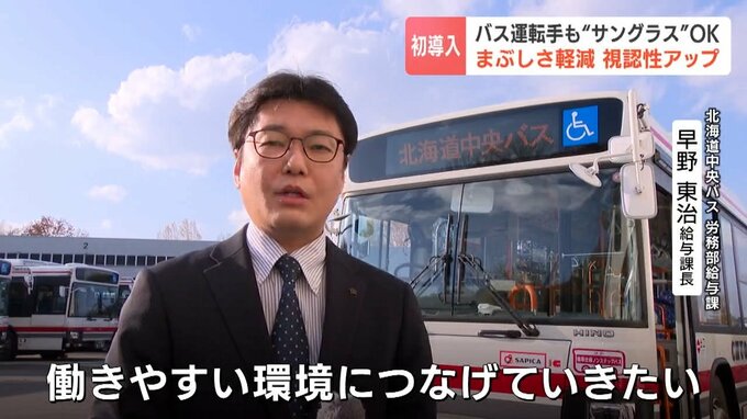 北海道中央バスとグループ会社は運転中のまぶしさや照り返しなどから眼を守ってもらおうと、11月から希望者に「偏光サングラス」の着用を認めました。