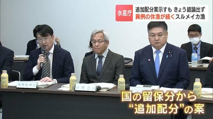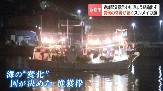 漁獲枠の超過で異例の休漁が続いているスルメイカ漁について水産庁が5日の審議会で追加配分の案を示しました。