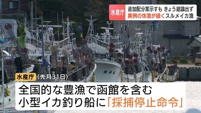 全国的な豊漁もあり、水産庁は10月末、函館市を含む全国の小型イカ釣り船に対し「採捕停止命令」を出す事態になりました。