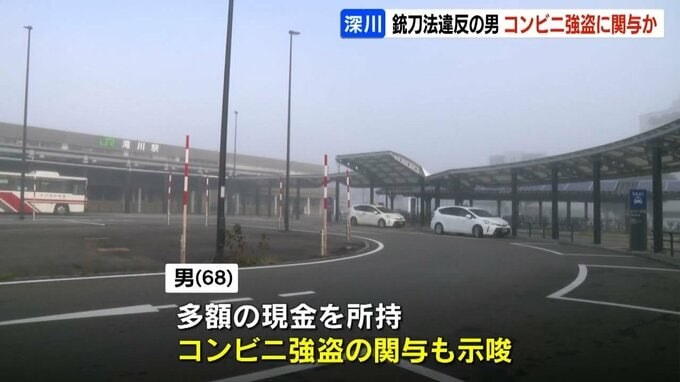 逮捕された深川の自称・無職の68歳の男は、多額の現金を所持し、コンビニ強盗への関与もほのめかしていることから、警察が裏づけ捜査を進めています。