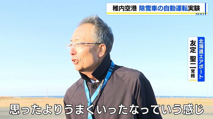 この実験は空港の除雪の自動化を目指すプロジェクトとして、道内7つの空港を管理・運営する北海道エアポートが行ったもので、滑走路では除雪車の走行性を確認しました。