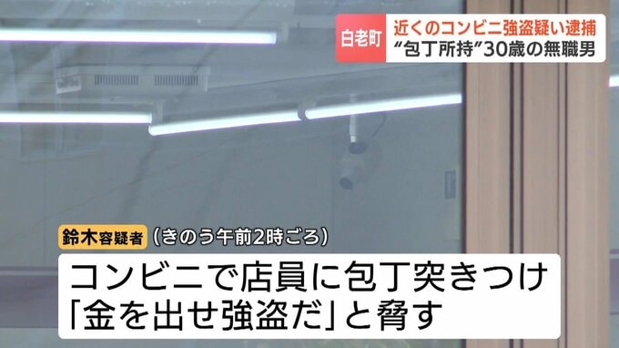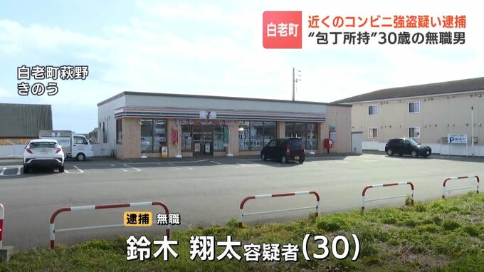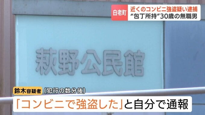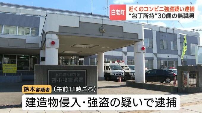 5日、北海道白老町で包丁所持の疑いで逮捕された無職の男について、警察は、近くで発生したコンビニエンスストアでの強盗の容疑で逮捕しました。
