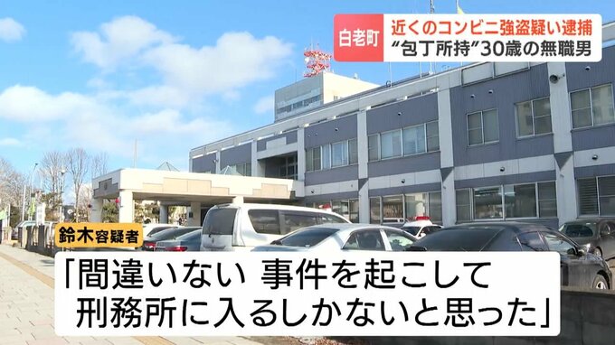 鈴木容疑者は、5日午前2時ごろ、白老町萩野のコンビニで、女性店員に包丁を突きつけて「金を出せ、強盗だ」と脅し、店員がバックヤードに逃げた隙に缶酎ハイやタバコを奪い逃走しました。