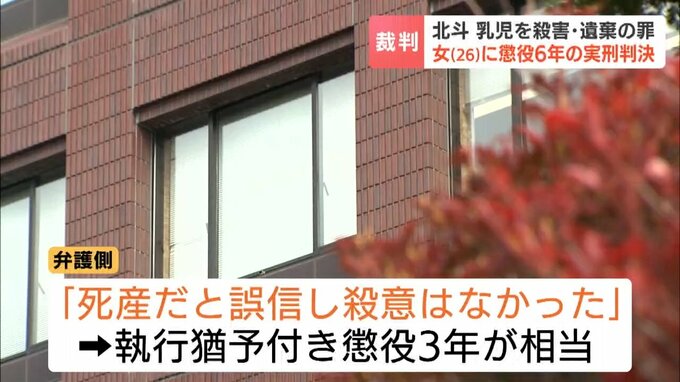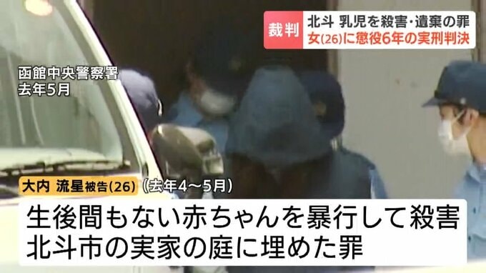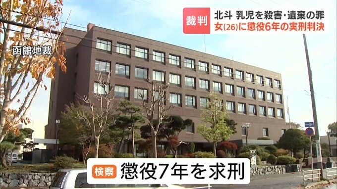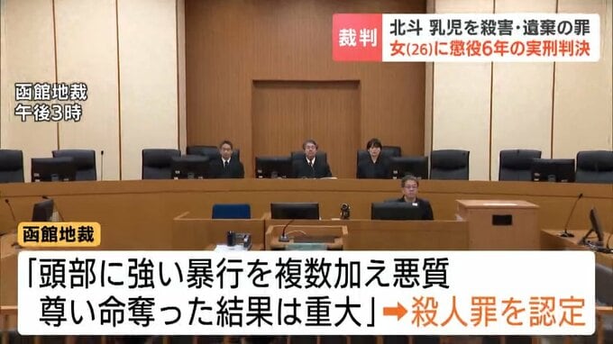 産んで間もない赤ちゃんを殺害し、北海道北斗市内に遺棄した罪に問われた26歳の女の裁判員裁判で、函館地裁は懲役6年の実刑判決を言い渡しました。