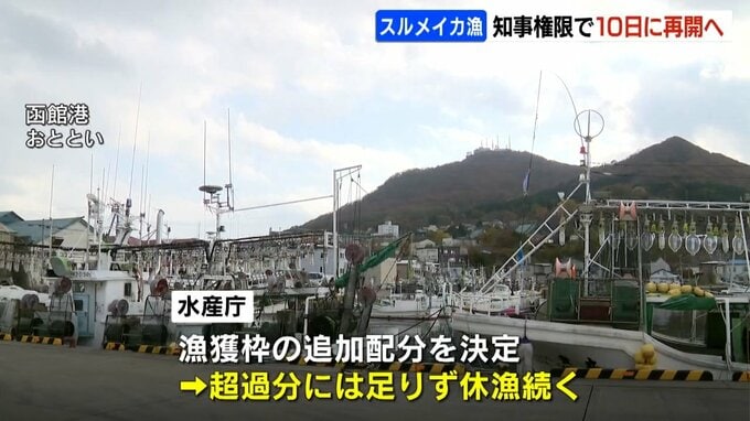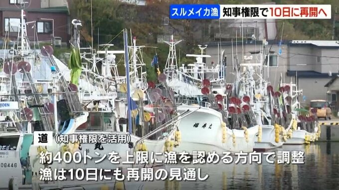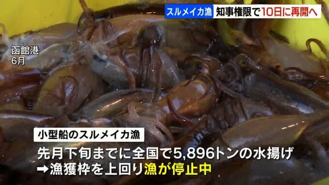 漁獲枠の超過で休漁が続いていた北海道内のスルメイカ漁が、10日にも再開する見通しとなったことが、関係者への取材でわかりました。
