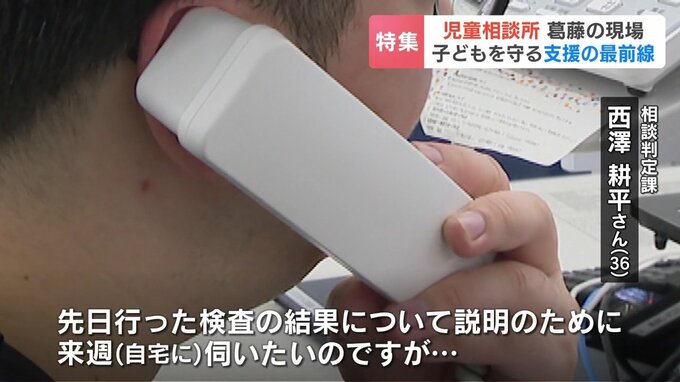 児童福祉司の西澤さんが、担当する家庭に電話を入れていました。