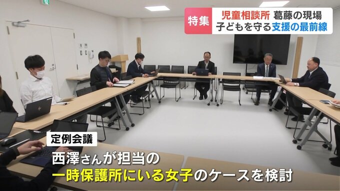 西澤さんは現在、一時保護の5人と継続支援の子供20人ほどを担当しています。この日の定例会議では、西澤さんが担当する一時保護所にいる女の子のケースが検討されました。