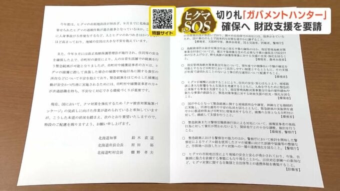 相次ぐクマの被害を受け、道は駆除を担える自治体の職員「ガバメントハンター」の確保を支援するよう、国に緊急要望しました。