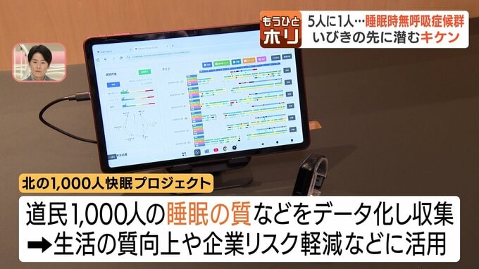 プロジェクトは、道民1000人に約1年にかけて腕時計型の端末をつけてもらい、睡眠の深さ、いびきや無呼吸の時間帯などのデータを収集。生活の質の向上や企業のリスク軽減に活用しようという試みです。