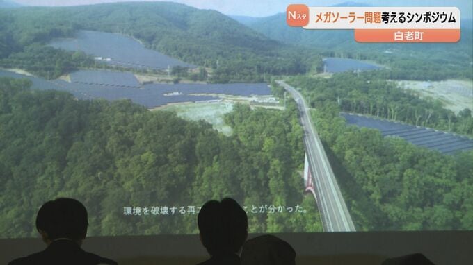 メガソーラー建設計画が進む白老町でシンポジウム開催 環境や暮らしへの影響について意見交換 協議会は規制強化求める要望書をすでに提出 2025年11月9日(日) 18:27 国内 北海道白老町の町内6か所で建設計画が進んでいるメガソーラーについて、住民らが話し合うシンポジウムが開かれました。シンポジウムは、メガソーラー建設にともなう環境や暮らしへの影響を考えようと、住民らで結…