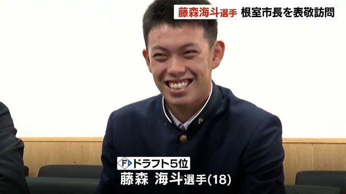 【ファイターズ】ドラ5位の根室市出身・藤森海斗選手が根室市長を表敬訪問「全力で取り組みたい」高知・明徳義塾でキャッチャーとして活躍 2025年11月10日(月) 12:06 国内 プロ野球ドラフト会議でファイターズから5位で指名を受けた藤森海斗選手が10日、地元・北海道根室市の市長を表敬訪問しました。石垣雅敏 根室市長「おめでとうございます。いやあ、背が大きいなあ」10日、根室市役…