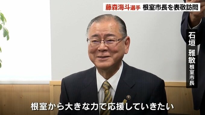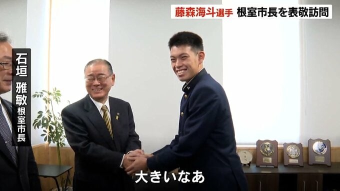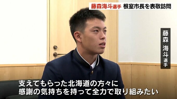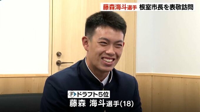 プロ野球ドラフト会議でファイターズから5位で指名を受けた藤森海斗選手が10日、地元・北海道根室市の市長を表敬訪問しました。