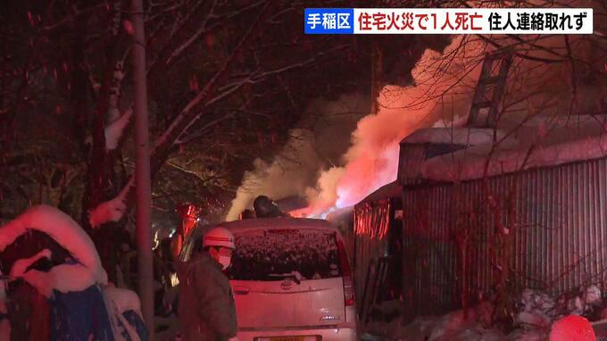 平屋の住宅が未明に炎上 性別不明の遺体発見 独り暮らしの80代男性か 札幌市手稲区 2022年12月12日(月) 12:44 国内 12日未明、札幌市手稲区の住宅から火が出て、内部から1人の遺体が見つかりました。 この家に住む80代の男性と連絡がとれなくなっていて、警察が身元の確認を進めています。 激しく燃える炎と立ち上る煙…12日午…