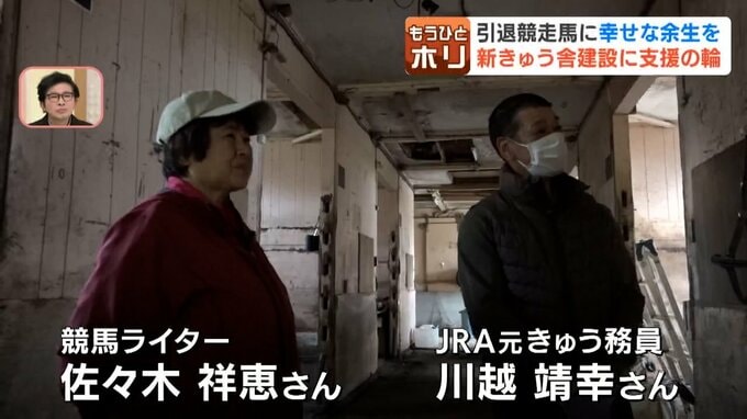 開業したのは5年前。JRAの厩務員だった川越さんと、競馬ライターとして活躍する佐々木さんが引退馬の余生を少しでも幸せにしたいと、築40年以上の厩舎を修復しながら運営してきました。