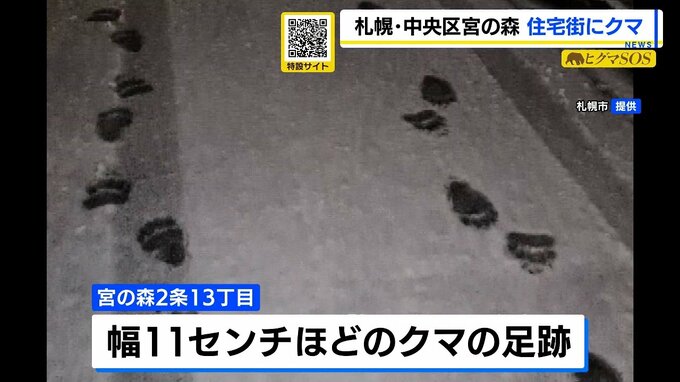 【ヒグマ情報】「家の敷地にヒグマがいる」雪の上の点々と続く足跡 札幌・宮の森の住宅街にヒグマ出没 小さめの成獣か 2025年11月11日(火) 10:58 国内 10日夜、札幌市中央区宮の森の住宅街にヒグマが出没し、札幌市が警戒を呼びかけています。10日午後8時ごろ、札幌市中央区宮の森2条11丁目で「家の敷地にヒグマがいる」と、住民から警察に通報がありました。約1時…