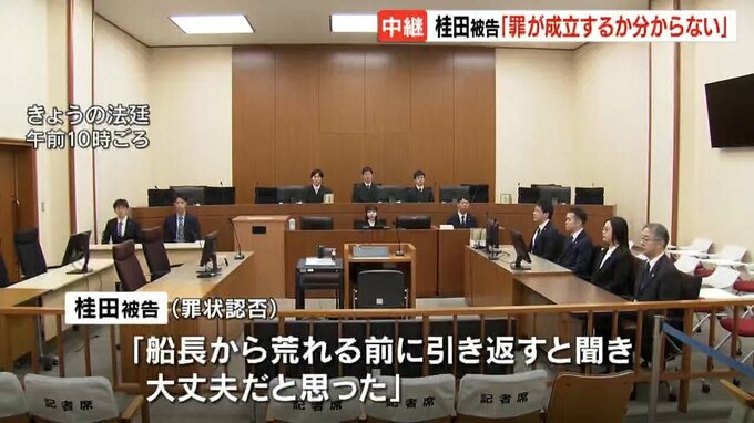 罪状認否で桂田被告は「船長から荒れる前に引き返すと聞き大丈夫だと思った。私には起訴状の罪が成立するかわからない。裁判の中で話すべきことを誠実に説明する」と話しました。