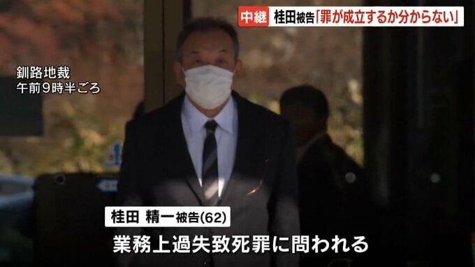 北海道知床沖で起きた観光船沈没事故の初公判で運航会社の社長は「私には起訴状の罪が成立するかわからない」と述べ、弁護側は無罪を主張しました。釧路地裁前から中継です。