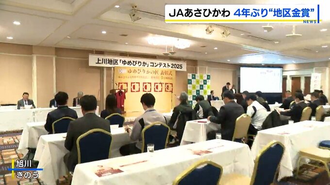 北海道上川地区の「ゆめぴりか」の出来栄えを競うコンテストが旭川市で開かれ、JAあさひかわが4年ぶり、3度目の地区金賞に輝きました。