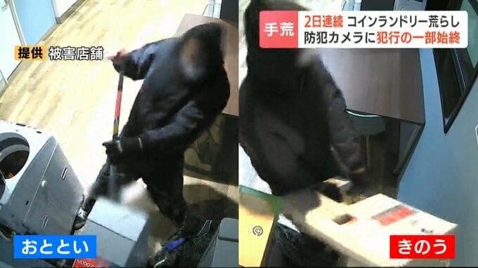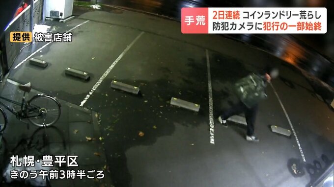 札幌市豊平区のコインランドリーで両替機などが壊され、現金が盗まれる事件が2日連続で起きました。店内の防犯カメラが捉えた犯行の一部始終です。