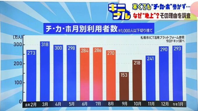 森田絹子キャスター:改めてですが…チカホの月ごとの利用者の推移です。