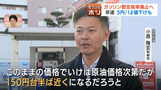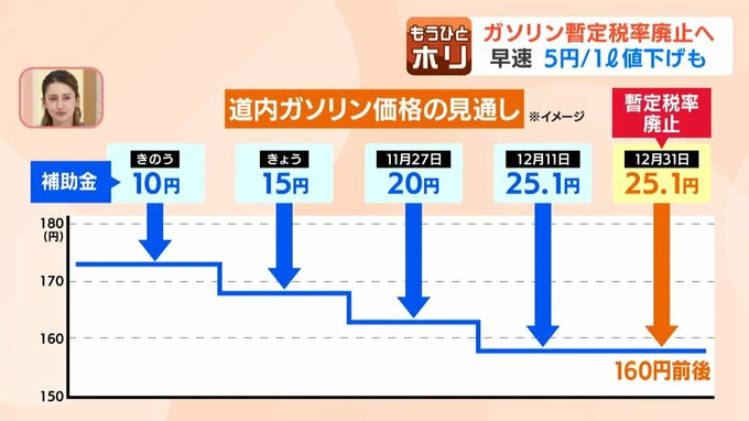 12月11日には暫定税率と同じ25.1円に増やし、ガソリン価格は160円前後まで下がる見通しです。