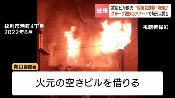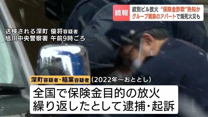 3年前、紋別の空きビルを保険金目的で放火した疑いでおととい男3人が逮捕された事件で、2025年4月にグループの男の親族が所有する上富良野町のアパートでも火事があり、1人が死亡していたことがわかりました。