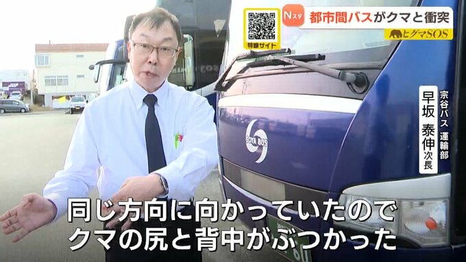 「同じ方向に向かっていたので、クマの腹と背中がぶつかった。運転手もびっくりしたのではないか」