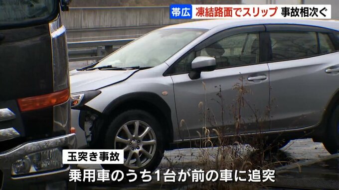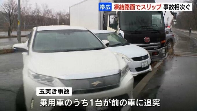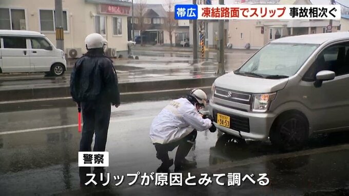 17日朝、北海道帯広市は路面が凍結し、スリップが原因とみられる事故が相次ぎました。
