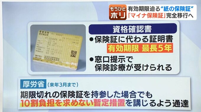 一方で、国による暫定措置もあります。厚労省は先週、期限切れの保険証を持参した場合でも、保険資格が確認できれば2026年3月まで、10割負担を求めない措置を暫定的に講じるよう全国の医療機関に通達しています。