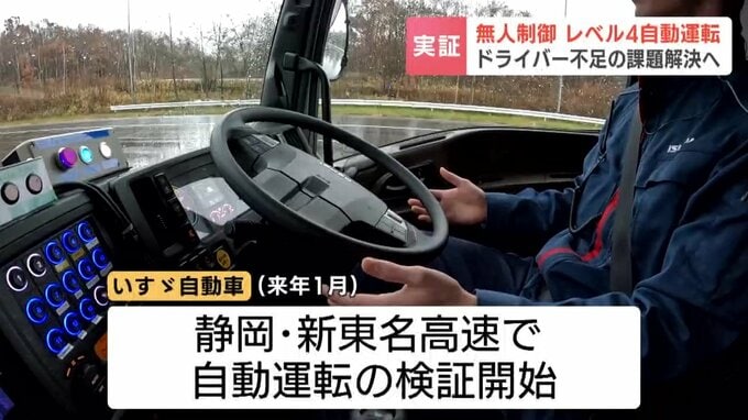 いすゞ自動車はトラックドライバー不足の解決に向けてドライバーがいないレベル4の自動運転の2027年度の事業化を目指しています。