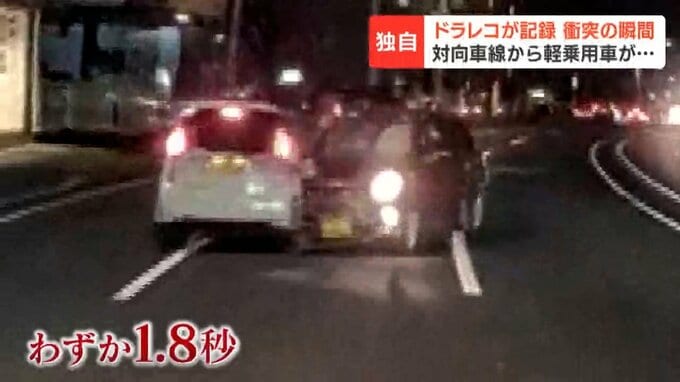 軽乗用車が対向車線に飛び出してから、衝突するまでの時間を測ってみると、1.8秒でした。事故を避けた後続車も間一髪だったことがわかります。