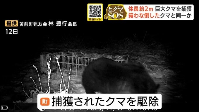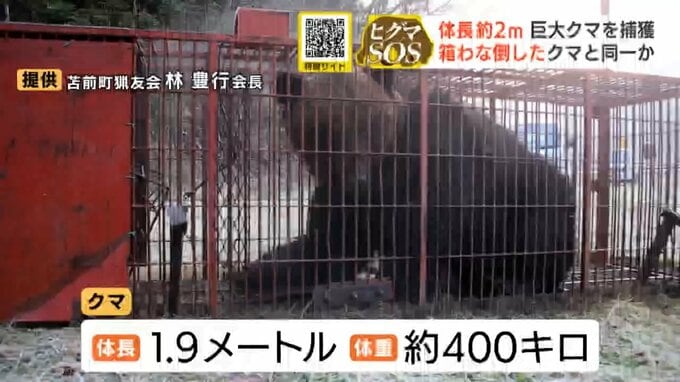 ヒグマの出没が相次いでいる北海道苫前町で、体長が2メートルに迫る巨大なクマが捕獲・駆除されました。