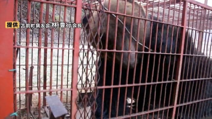25日、苫前町小川地区に設置された箱わなに、ヒグマが入っているのが見つかりました。