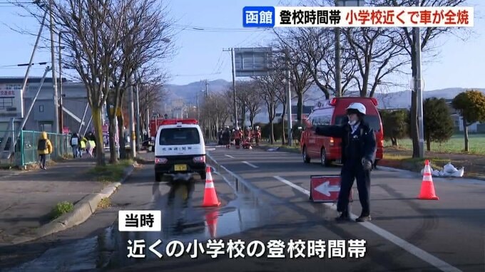 27日午前7時半前、函館市美原5丁目の市道で「軽四の車から火が出ている」と目撃者から警察に通報がありました。