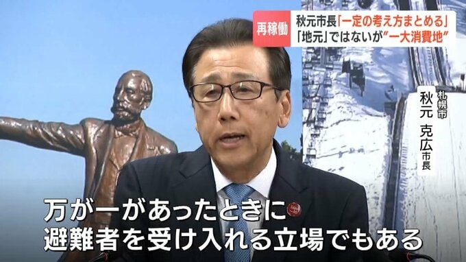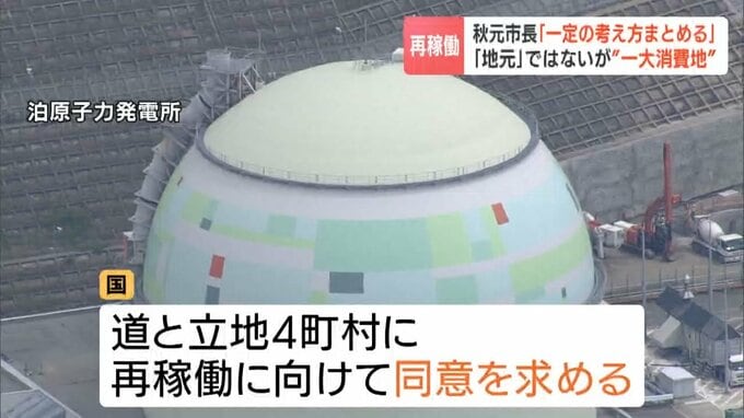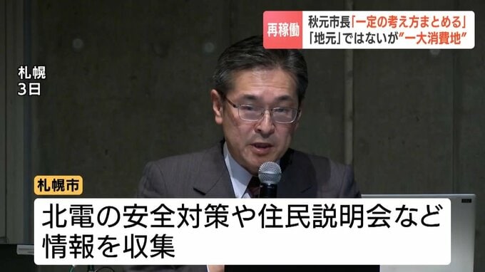 北海道電力の泊原子力発電所3号機の再稼働に向けた動きが加速する中、札幌市は国が「同意」を求める「地元」ではありませんが、秋元克広市長は、原発の再稼働について札幌市としての考え方をまとめる方針を示しました。
